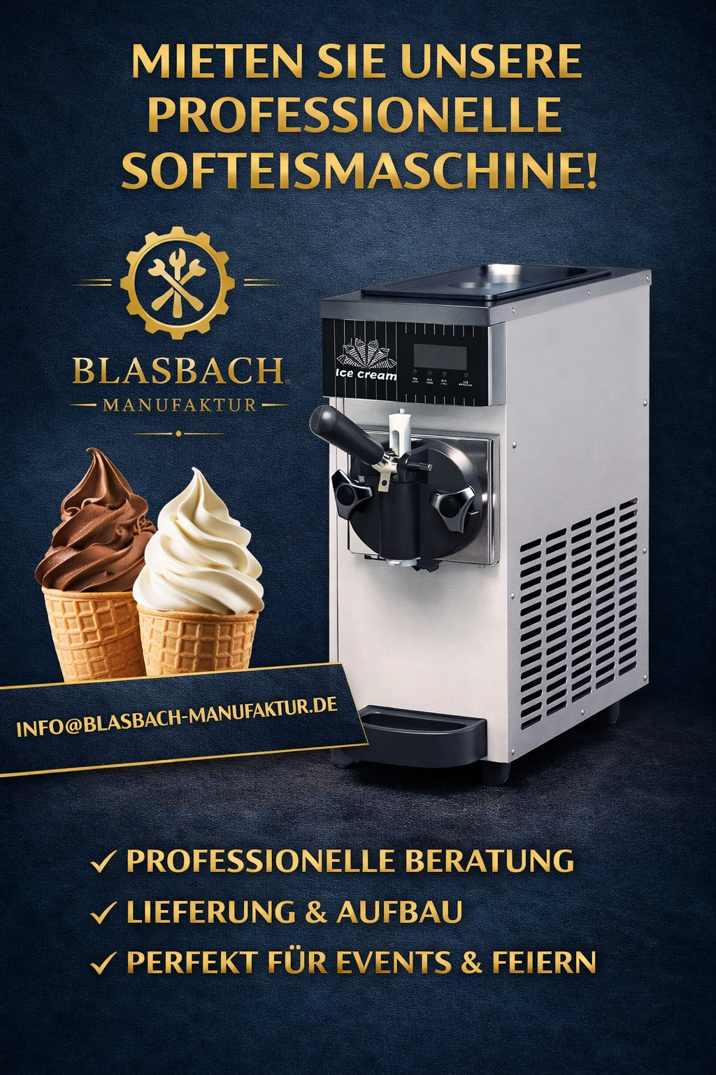Verleihen Sie Ihrer Veranstaltung das gewisse Etwas! Mit unserer hochwertigen Softeismaschine (Auftischgerät) begeistern Sie Ihre Gäste mit frischem, herrlich cremigem Softeis – ein Publikumsmagnet für Groß und Klein.